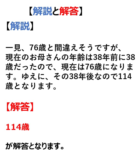 【問題】38年前 お母さんは38歳でした 38年後お母さんは何歳ですか? 2025 11/18 Uncategorized November 18, 2025 「38年前 お母さんは38歳でした 38年後お母さんは何歳ですか?」というファーウェイの入社試験で出された問題、1分で解けたら天才らしい。 最強のおすすめ漫画 Uncategorized よかったらシェアしてね! URLをコピーしました! URLをコピーしました! 【難問】ノートと鉛筆の合計は100円、鉛筆はノートより40円安いです! → 鉛筆の値段は? 【悲報】与田ちゃん、お胸がでかすぎる この記事を書いた人 poi 関連記事 これが解ければGoogleに入社できます↓ November 19, 2025 計算問題?モノゴトの捉え方? November 19, 2025 Google入社試験で実際に使われた30秒で適性が分かるゲームがこちら November 19, 2025 【悲報】与田ちゃん、お胸がでかすぎる November 19, 2025 【難問】ノートと鉛筆の合計は100円、鉛筆はノートより40円安いです! → 鉛筆の値段は? November 18, 2025 【答】99%が解けなかったGoogle入社試験の問題がこちら November 18, 2025 加藤茶さん、もうダメそう・・・・・・ November 18, 2025 女子高生陸上競技会、開始9秒で乳首が見えるハプニングが発生するwwwwwww November 17, 2025 コメント コメントする コメントをキャンセルコメント ※ 名前 ※ メール ※ サイト 次回のコメントで使用するためブラウザーに自分の名前、メールアドレス、サイトを保存する。